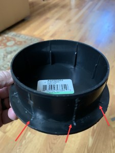 - Using the knife, cut off the plastic tabs on the end cap so that it will fit inside the pipe