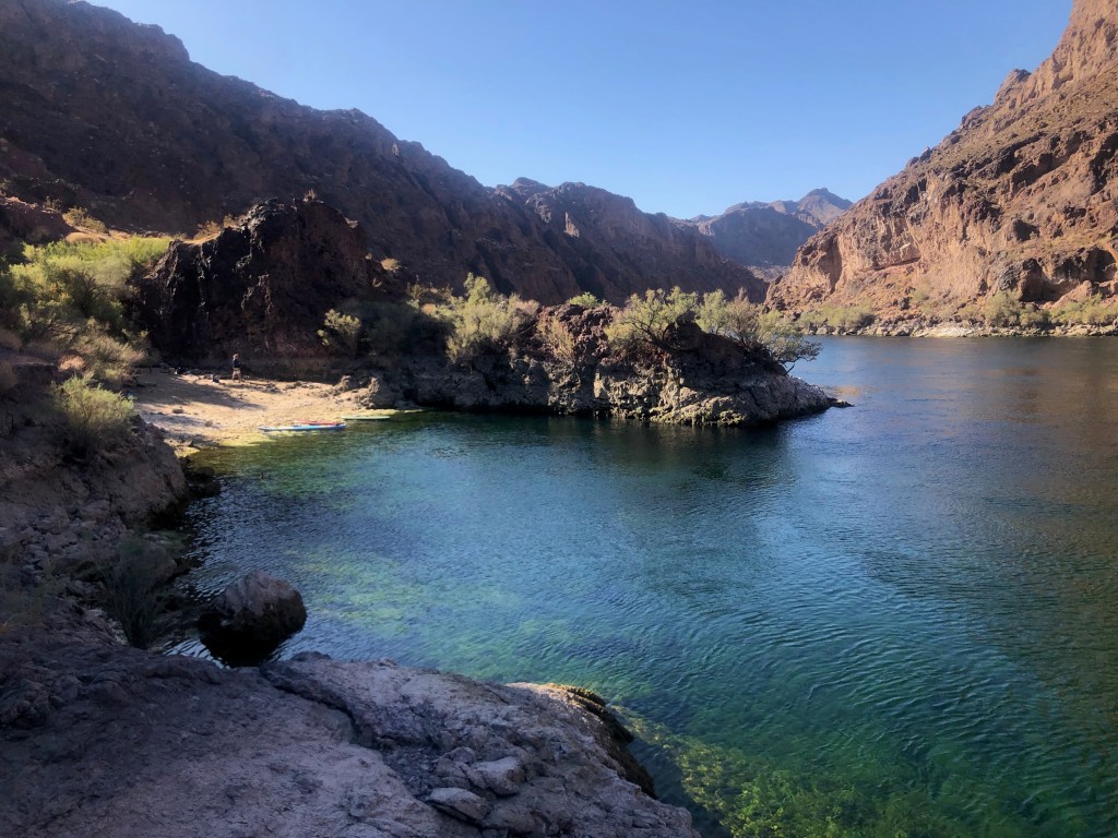 The day was supposed to be our hardest, covering the most mileage while traveling upstream against the current. We wanted to be on the water by 8AM to make as much progress as possible. The released water at Hoover fluctuates during the day as electricity usage increases. For example, there’s very little current in the morning when Los Angeles is asleep. But the flow is at full force in the afternoon and evening when everyone is at home with their air conditioners fighting to maintain 76 degrees.