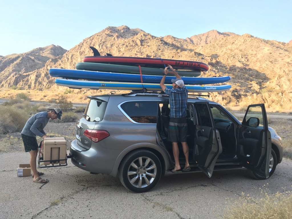 Unfortunately our first challenge of the day wasn’t the upstream current, but a dead battery on the truck. We thought that we were starting and recharging the battery enough as we pumped up our boards. We were incorrect. Kuehlio walked down to the Willow Beach marina and quickly found someone willing to come jump start the truck. This only set us back 45 minutes and we were happy to be camped close to available help.